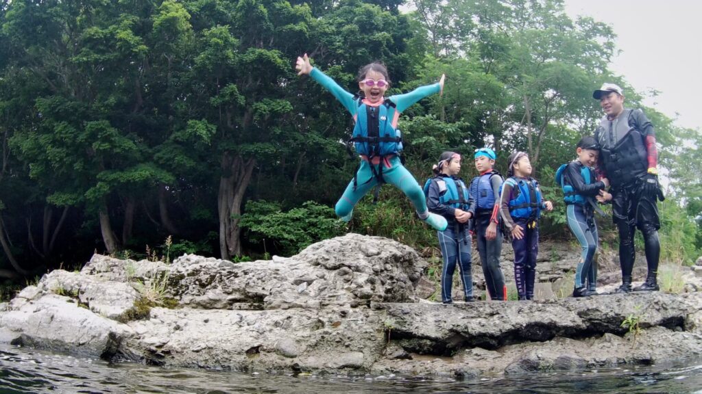 川の生き物を探したり、川に飛び込んだリ、泳いだり、思いっきり川遊びを楽しもう!
